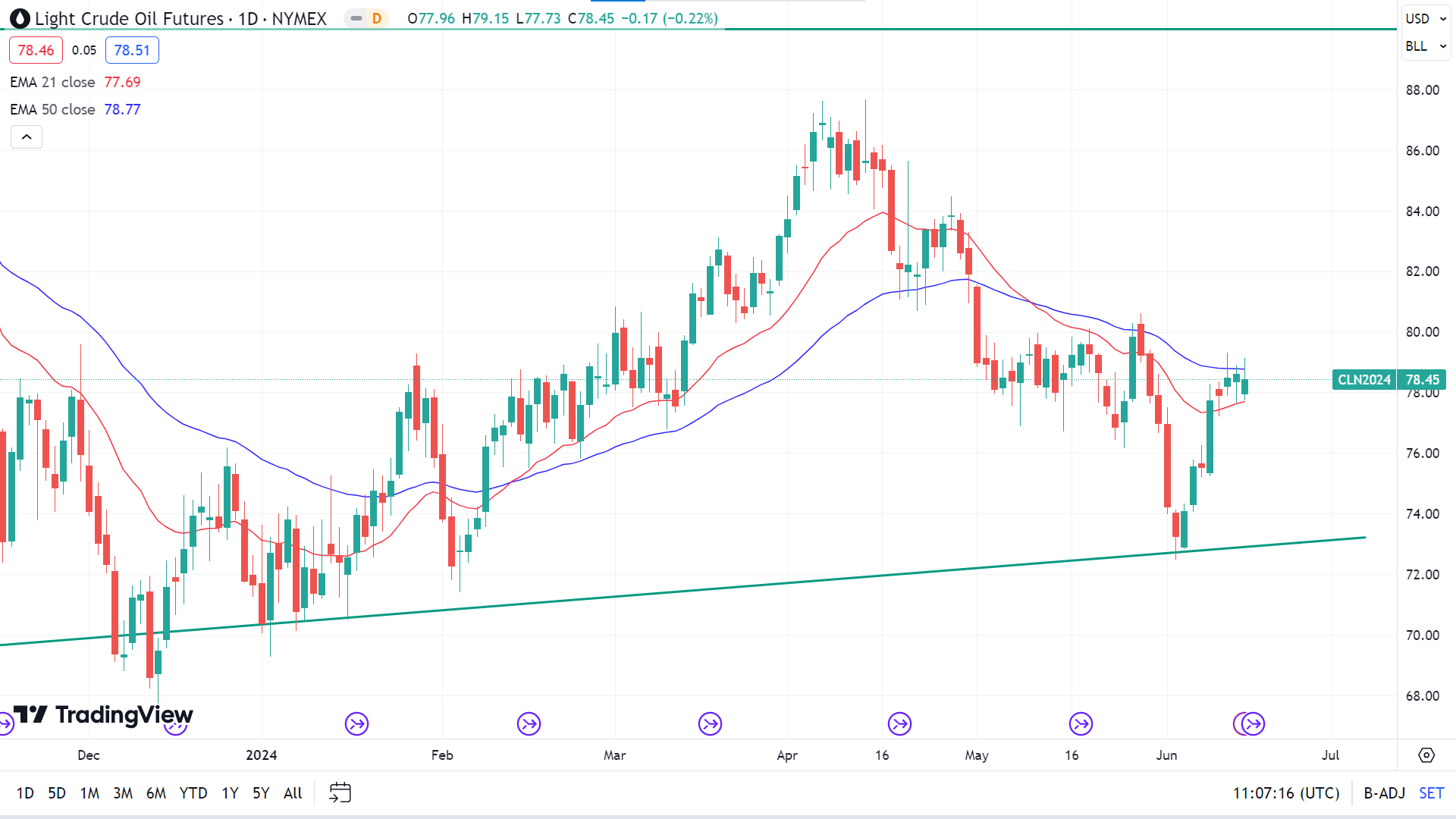 與此同時,正如普遍預期的那樣,聯邦公開市場委員會(FOMC)在 6 月份會議期間將基準貸款利率穩定在 5.25%–5.50%。利率上升可能會抑制經濟增長,從而影響石油需求。
